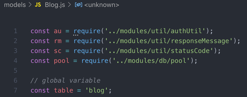 - models > Blog.js : 데이터베이스에 읽고 쓰는 것과 같은 코드들이 들어간다. model을 분리하면 routes에서 어떤 방식으로 수행되는지 내부적으로 알 수없게 추상화되기 때문에 기능적으로 분리된다.