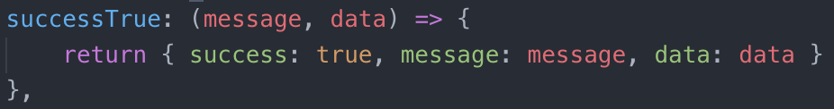 return { success: true, message: message, data: data }