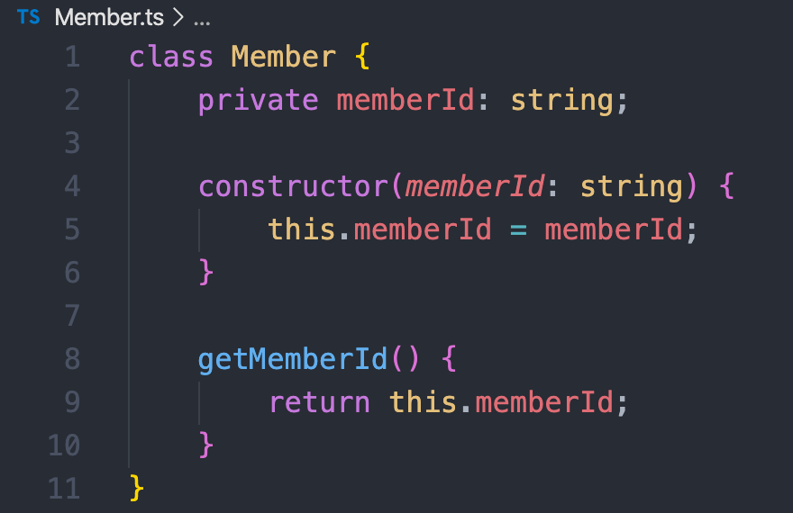 즉 어떻게 보면 ts에서의 private으로 선언된 memberId 필드는 개발자에게 심리적 안정감(?)을 주는 눈속임 코드인 셈이지요ㅋㅋㅋ.