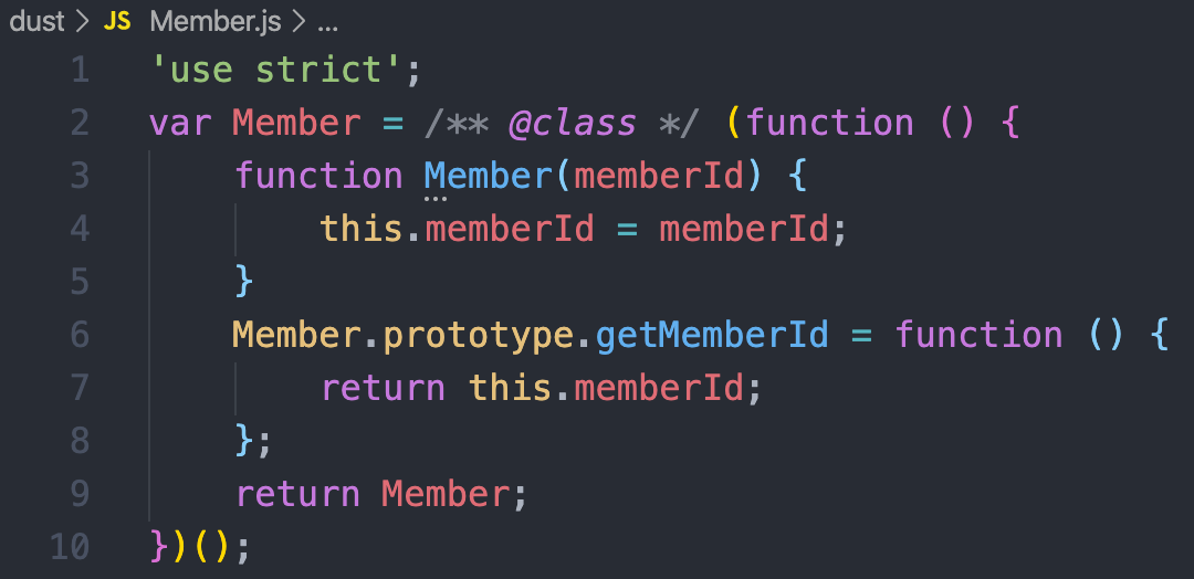 분명 위에서 우리는 트랜스파일링된 js코드에서 memberId가 Member 객체에 프로퍼티로 할당된 것을 보았습니다.