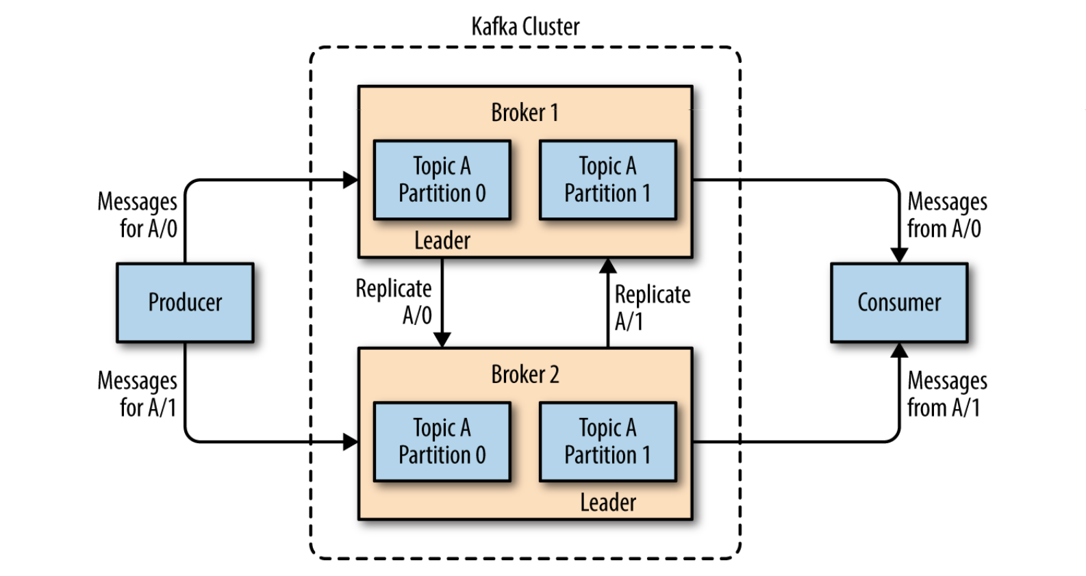 카프카 클러스터는 마스터라는 개념이 없기 때문에 모든 클러스터 서버가 클라이언트의 요청을 받을 수 있습니다. 모든 카프카 호스트를 지정하지 않는다고 동작하지 않는 것은 아니지만, 카프카 클러스터는 살아있지만, 입력한 호스트가 다운될 경우에는 프로듀서가 살아 있음에도 다른 카프카 호스트를 찾지 못해서 메시지를 전송하지 못하는 경우가 생깁니다. 하지만 모든 호스트를 입력해 두었을 경우에는 주어진 리스트의 서버 중 하나가 장애가 발생하더라도 프로듀서가 자동으로 다른 서버에 재접속을 시도하기 때문에 장애에 내성이 생기게 됩니다.