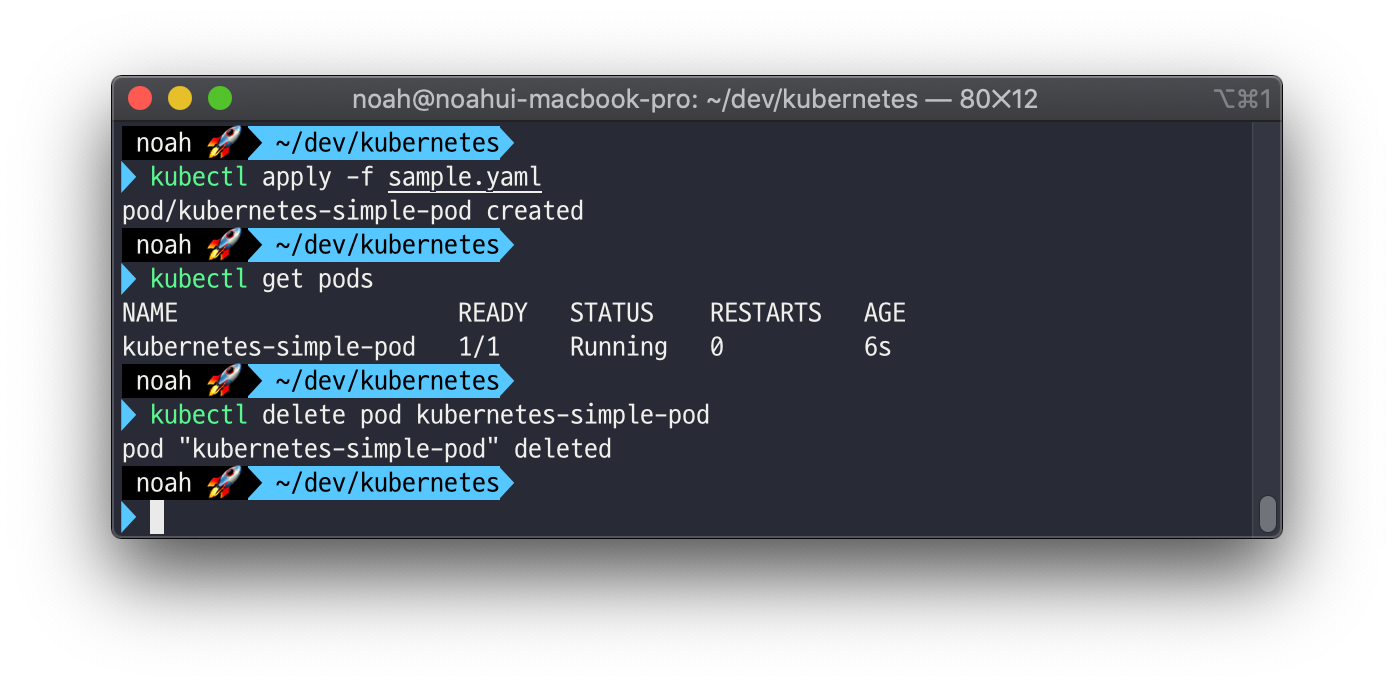 파드를 실행시켜보았다면 kubectl delete pod kubernetes-simple-pod 명령어로 파드를 삭제합니다.