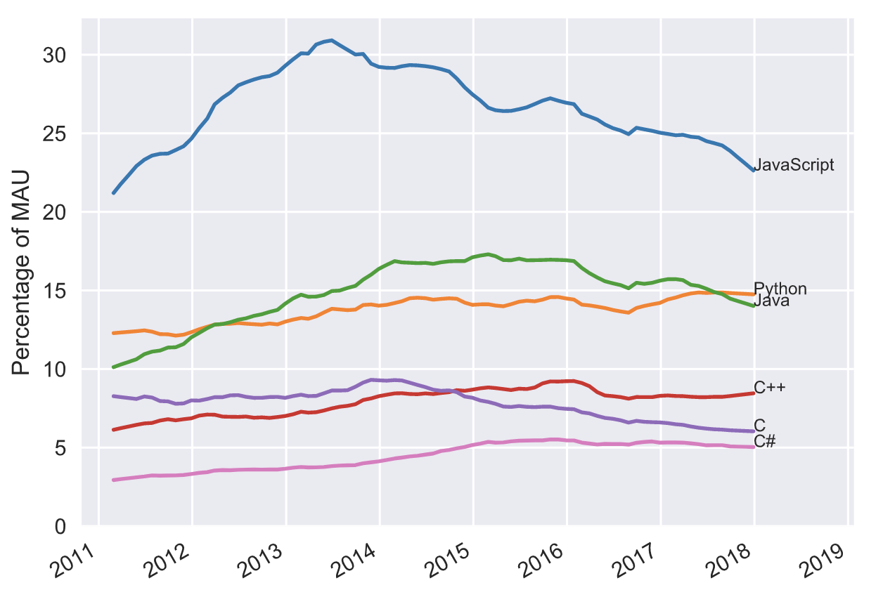 개발자라면 누구나 한번 쯤 들어봤을 github.com의 프로젝트 중 가장 많이 사용되고 있는 언어가 자바스크립트입니다. 왜 이렇게 갑자기 자바스크립트는 핫 해진걸까요? 그 이유는 크게 두가지로 꼽을 수 있을 것 같습니다.