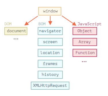 Window 객체는 모든 객체가 소속된 객체이고, 전역 객체이면서, 창이나 프레임을 의미한다. 그러므로 위의 그림에 나와있듯이 document객체나 BOM에 location객체 등 모든 것이 window객체 안에 있다.