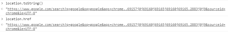 location.toString()과 location.href는 둘 다 같은 값을 출력한다. 둘 중에선 location.href를 좀 더 선호하는 편.