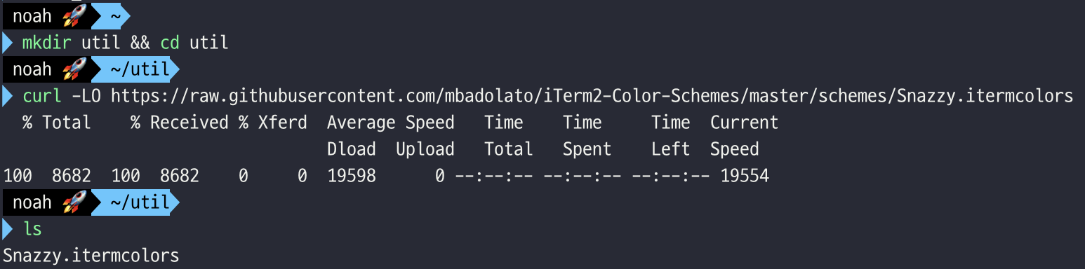 curl -LO https://raw.githubusercontent.com/mbadolato/iTerm2-Color-Schemes/master/schemes/Snazzy.itermcolors