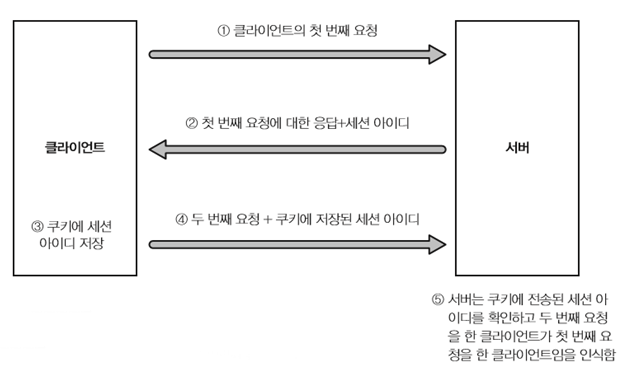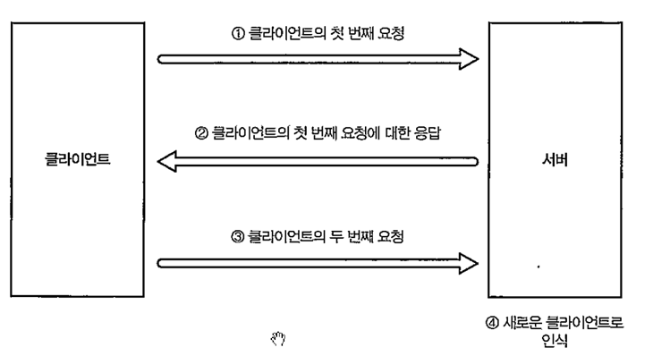 위의 그림과 같이 http 프로토콜은 상태를 유지하지 않기 때문에 첫 번째 클라이언트의 요청에 대해서 서버가 응답을 보내면 똑같은 클라이언트가 두 번째 요청을 했을 때 서버에서는 두 번째 요청을 한 클라이언트가 첫 번째 요청을 한 클라이언트인지 인식하지 못한다.