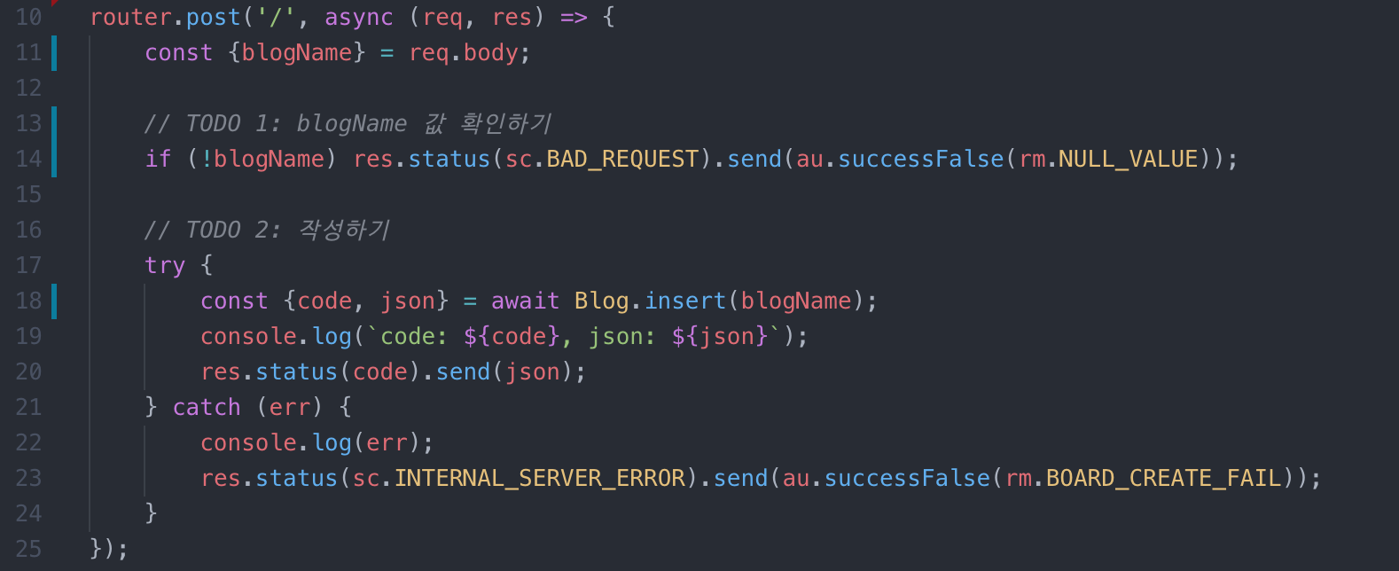 blogs.js도 전체적인 구조는 비슷하기 때문에 CREATE 부분만 다루도록 하겠다.