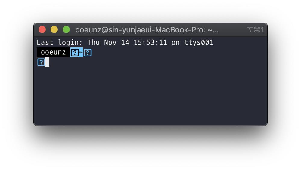 oh-my-zsh agonster theme 기준 기존과 적용되는 font size가 살짝 달라졌다. mojave에서 D2Coding font를 사용했었는데, 같은 font로 Catalina에서 적용하게 될 경우 font가 깨지는 이슈가 있다. D2coding ligature로 적용하게 되면 font가 정상 적용되는데 기존과 적용되는데 이유는 알 수 없지만 기존과 적용되는 font의 사이즈가 살짝 달라진 것 같다.