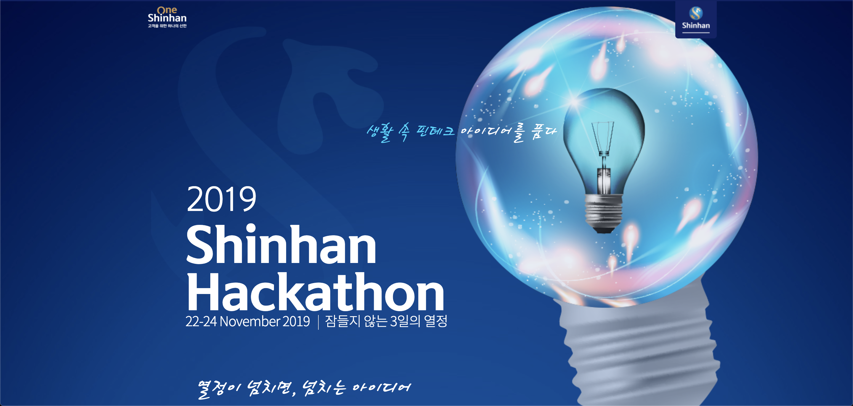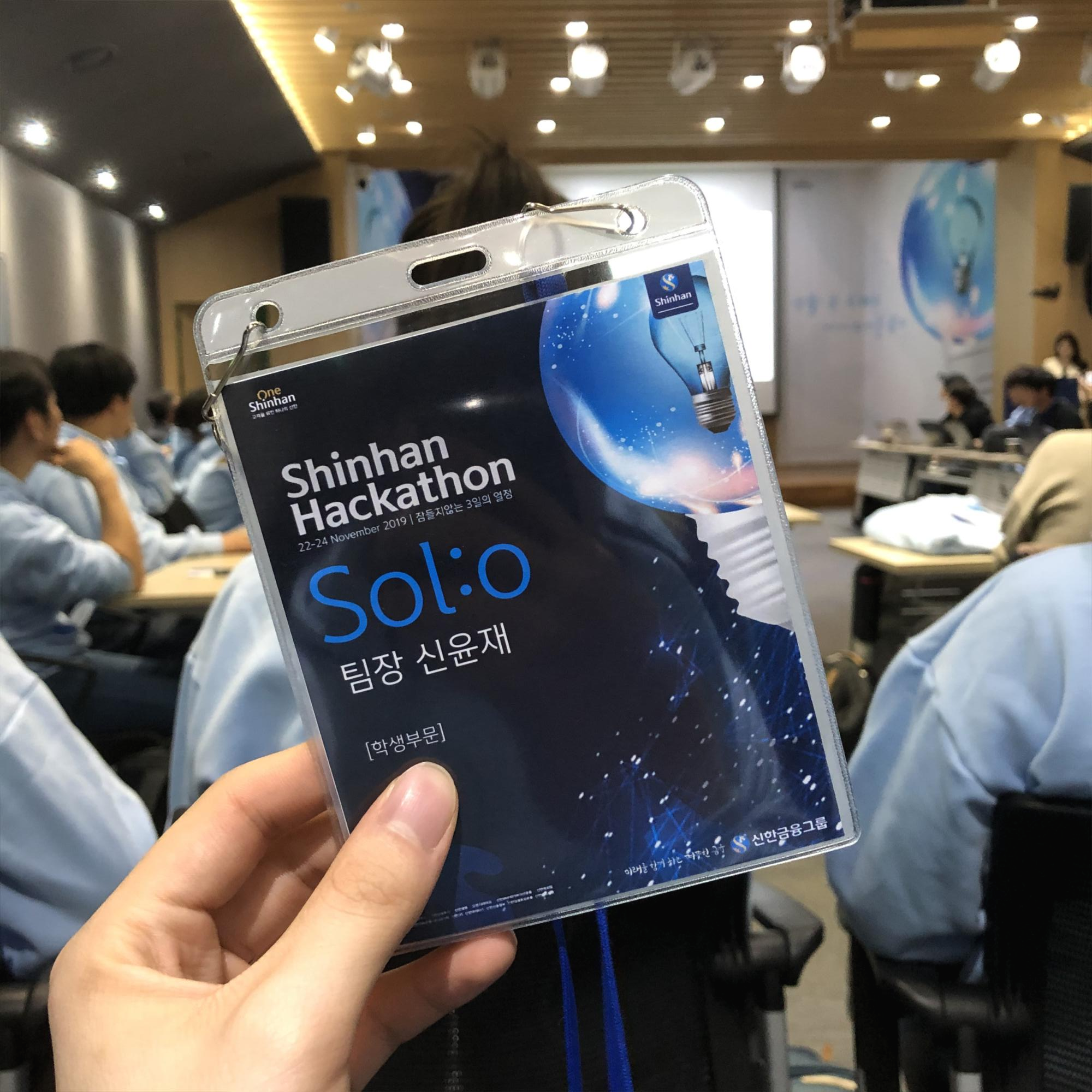 2019-11-22일 신한 그룹에서 잠들지 않는 3일의 열정이라는 키워드로 국내 최대 규모의 해커톤을 개최하였다. 해커톤의 주제는 신한은행, 신한카드, 신한금융투자, 신한생명 각 그룹사들이 참가자들에게 제공하는 130여 개의 API를 사용하여서 생활 속 핀테크 서비스를 만드는 것이었다. 2019년에 가장 큰 대회였던 만큼 수상자에게는 총 상금 40,000,000원과 신한 그룹 공채 지원시 서류 면제 혜택이 주어졌다. 때문에 236팀이라는 많은 팀들이 해당 해커톤에 지원하였고, 예선 경쟁률만 10:1에 육박하게 되었다.