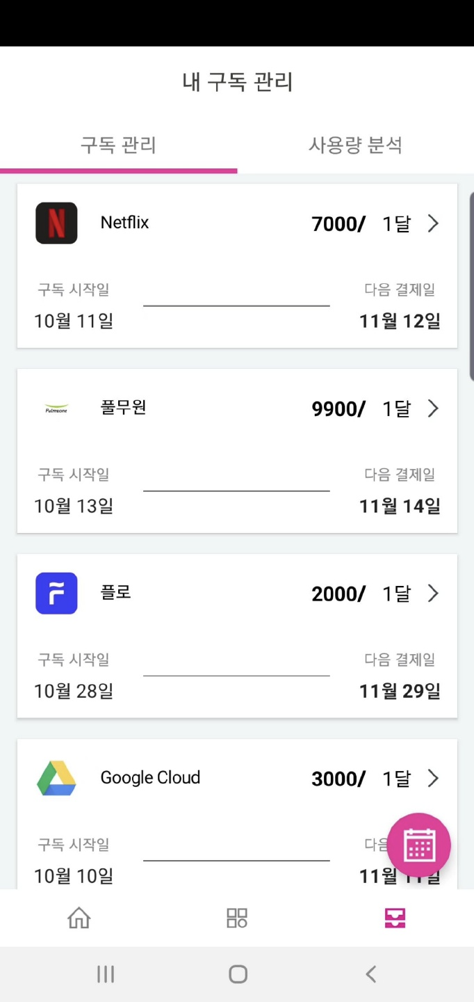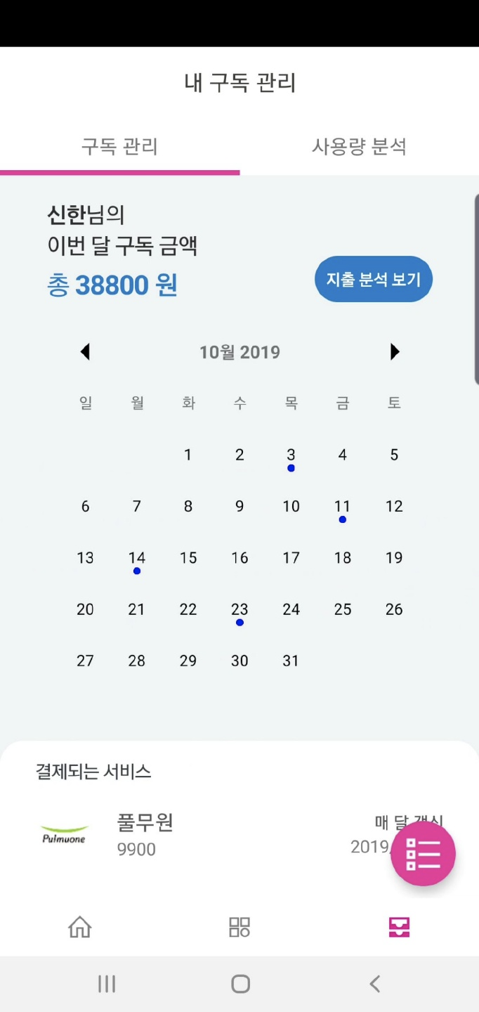 2. 구독 중인 서비스들을 하나의 결제 수단을 통해 통합적으로 관리하고 확인할 수 있는 기능.
