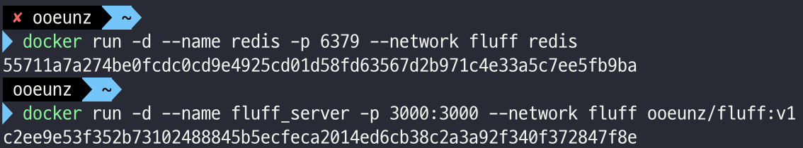 위의 예시에선 redis와 fluff_server 두개의 컨테이너를 배포하였습니다.