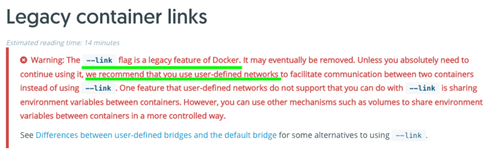 ※ 예전에는 Docker Link를 사용해서 private IP끼리 통신을 하도록 하였지만, 최근에는 Docker Link 방식을 권장하지 않고 있습니다. (곧 사라질 가능성이 있다.) 따라서 이번 포스팅에서는 Docker Network를 사용하도록 하겠습니다.