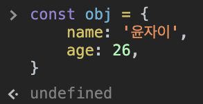 console.log(obj.name); // (출력 값) 윤자이