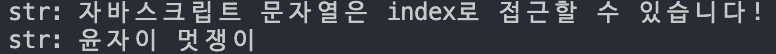 let str = '자바스크립트 문자열은 index로 접근할 수 있습니다!';