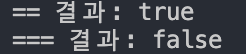 결과를 보니 조금 어리둥절 합니다. '==' 연산자를 사용한 예제는 문자열(string)과 숫자(number)를 비교했는데, 타입이 다름에도 불구하고 값이 같다는 결과를 리턴해주고 있습니다.